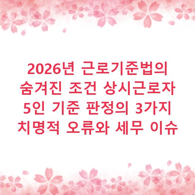 사무실 의자에 앉아 있는 직원이 4명이라면. 대부분의 사업주는 막연히 5인 미만 사업장이라고 생각합니다. 절대 아닙니다. 그 판단 하나로 향후 연장근로수당 백만 원 부터 정부지원금 지원 제외 까지, 예상치 못한 법적·재정적 리스크에 직면할 수 있습니다…