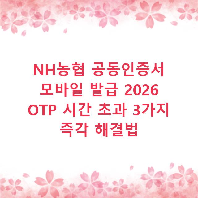NH농협 공동인증서 모바일 발급 2026 OTP 시간 초과 3가지 즉각 해결법