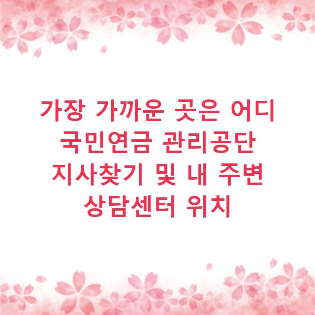 가장 가까운 곳은 어디 국민연금 관리공단 지사찾기 및 내 주변 상담센터 위치