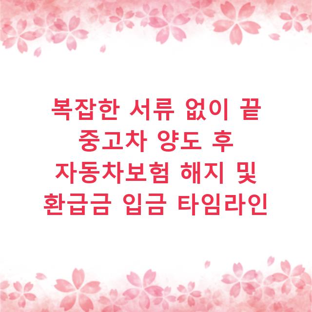 중고차를 정성껏 보수하고 광고도 열심히 올려 드디어 성사시켰을 때 기분이 정말 업 되죠. 하지만 판매 대금을 받았다고 모든 게 끝이라고 생각하신다면 지금 이 포스팅을 정독해볼 필요가 있습니다. 통장에 떨어진 차값 바로 옆에 자동차보험 환급금이 제대로 …