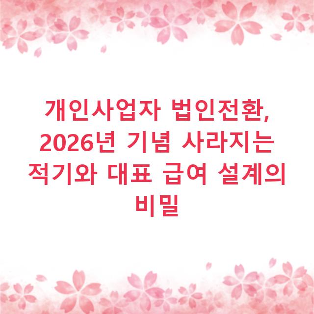 개인사업자 법인전환, 2026년 기념 사라지는 적기와 대표 급여 설계의 비밀