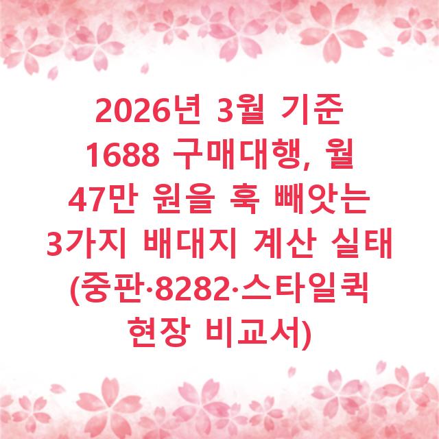 최종 요약: 1688 구매대행의 진짜 비용은 배대지 선택 한 번에 갈립니다. 부피무게 계산의 사소한 기준값 차이가 월 마진을 갉아먹고, 통관 지연 시 업체의 투명하지 않은 대응이 기회비용을 증발시킵니다. 2026년에는 기술력 없는 배대지와의 거래가 통관 지연이라는 새로운 리스크를 낳습니다. 지금 당장 할 일은 명확합니다. 과거 데이터를 분석하고, 다음 견적 요청부터는 부피무게 기준과 통관 대응 절차를 서면으로 확약받으세요. 소량 테스트로 이행을 확인한 후에야 본격적인 거래로 확장하십시오. 당신의 비즈니스는 저렴한 단가가 아니라, 예측 가능한 총비용 관리에서 승리합니다.